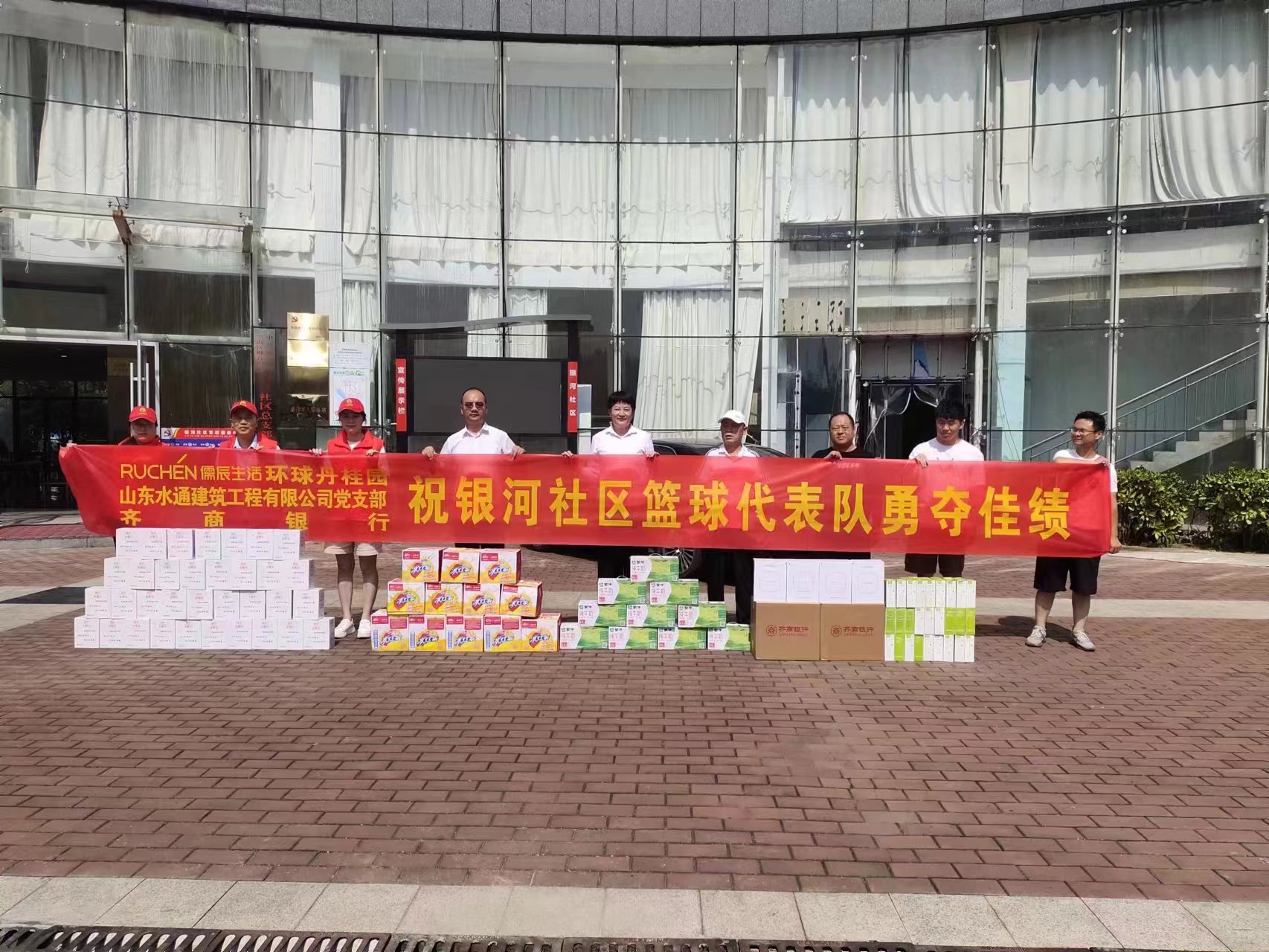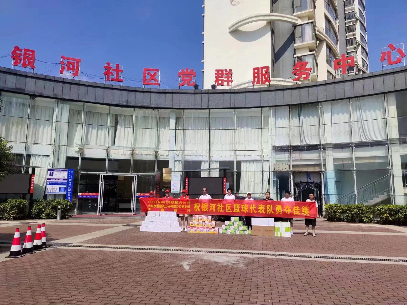 柳青“城BA”即将开赛, 2023年8月19日山东水通建筑工程有限公司党支部为银河社区送去牛奶、冰红茶等物品,祝银河社区篮球代表队勇夺佳绩!